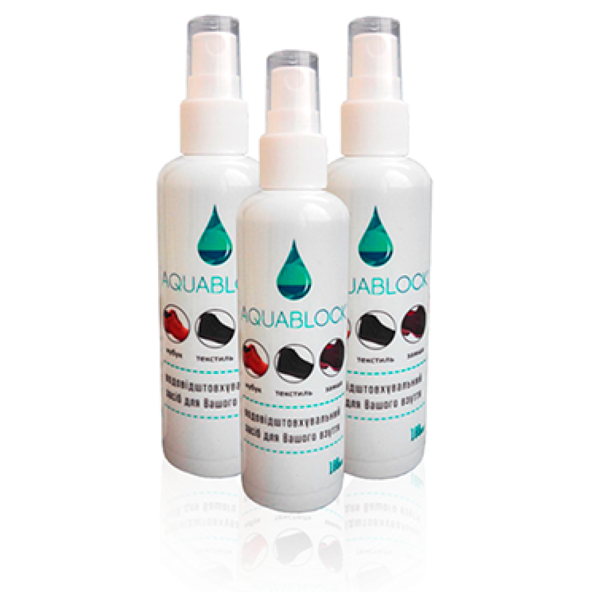 ЕФЕКТИВНЕ ЗАСІБ для захисту вашого взуття та одягу від води та бруду з інноваційною технологією, яка формує всередині пор і на поверхні матеріалу не гладку, а розгалужену нанорозмірну структуру. Після оброблення поверхні AQUABLOCKом утворюється невидиме покриття, яке надає вашому взуттю й одягу унікальні водо- і брудо-відштовхувальні властивості, у подальшиті чого поверхня практично не взаємодіє з водою та її розчинами та має ефектом самоочищення без втрати повітропроникності. Цей революційний засіб є хімічно нейтральним і повністю нешкідливим. Легкий і простий у застосуванні.