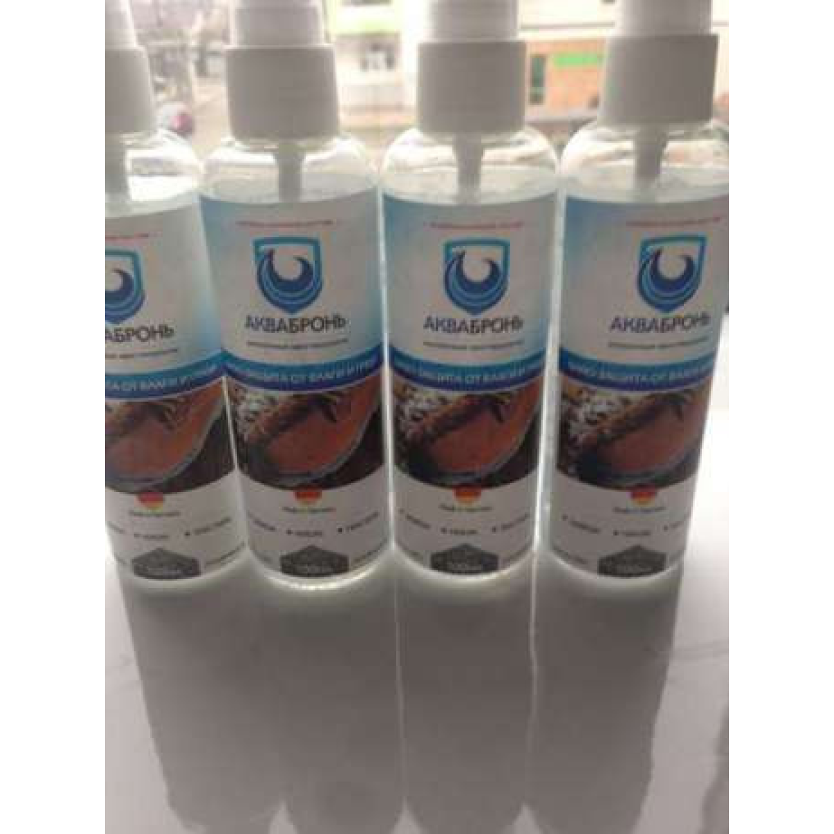 АКВАБРОНЬ надає водовідштовхувальні властивості практично будь-пористим гладеньким поверхонь, таким як: трикотаж, замша, хутро, нубук, дерево, кирпичь, бетон, картон. Засіб відмінно підійде для додання водовідштовхувальних властивостей таких виробів як взуття, верхній одяг, головні убори, парасольки (зникне необхідність їх сушити), оббивка м“яких меблів, салон автомобіля, килими, скатертини, одяг домашніх вихованців, спецодяг, туристичне спорядження, будівельні матеріали, сумки та чохли для техніки та інші.