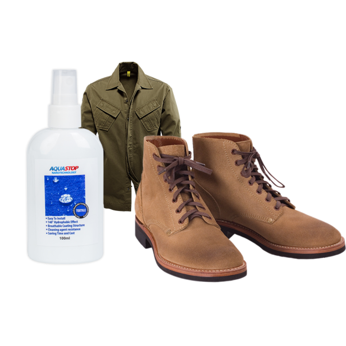 AquaStop для взуття та одягу – це спеціальне однокомпонентні покриття, розроблене для захисту будь-яких текстильних та шкіряних матеріалів, німецькою лабораторією Nanolab.