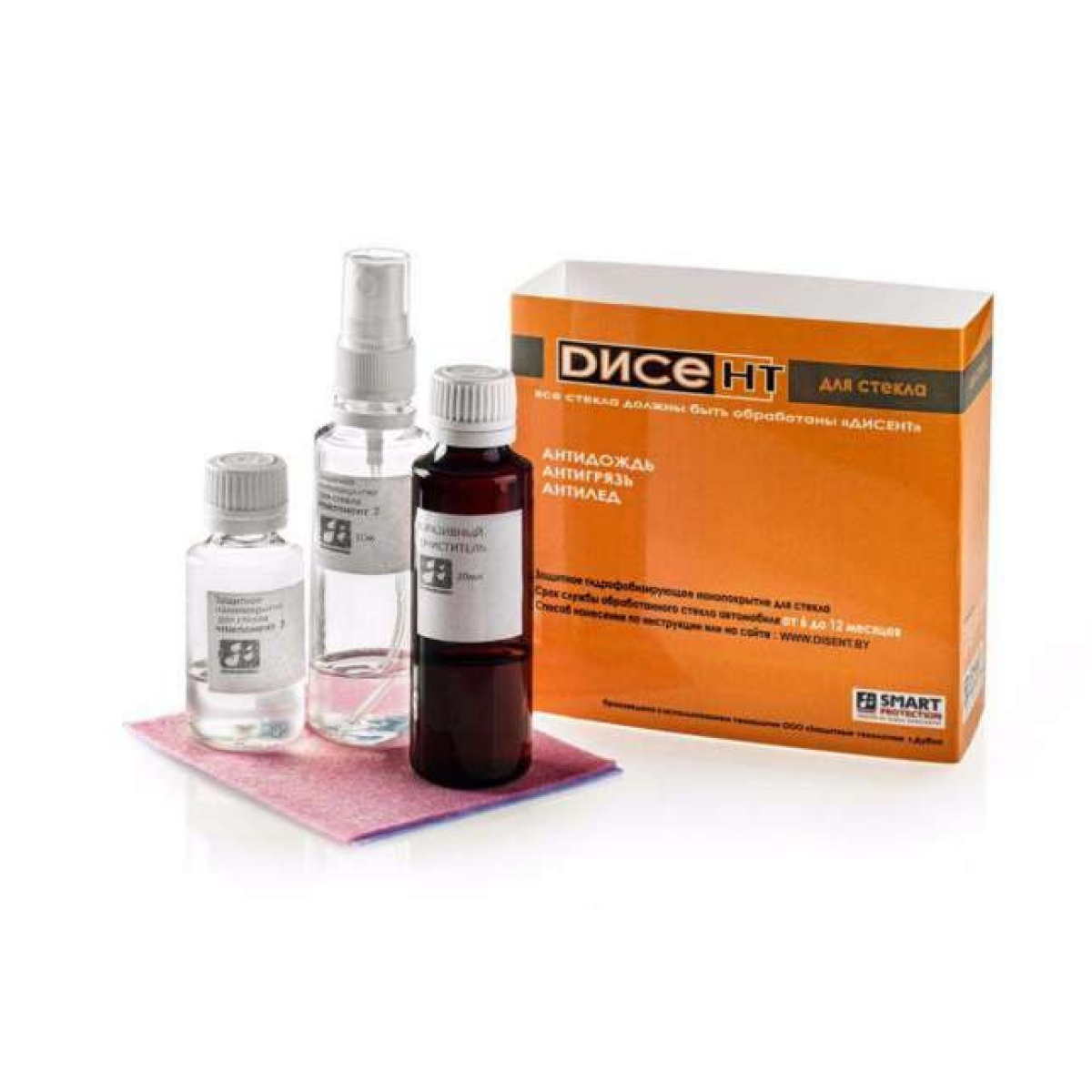 Наша компанія виготовляє набори, як для індивідуального використання, достатнього для покриття всіх стекол легкового автомобіля, так і для професіоналів – автосалонів, автосервісів, сервісних служб, мийок, клінінгових компаній, власників нерухомості, будівельників, підприємств ЖКГ і т. п. Гідрофобізатор для автомобіля (так званий антидощ) — захисні нанопокриття, затребувані автолюбителями в усьому світі. Компанії-виробники та індивідуальні користувачі повсюдно використовують останні досягнення в галузі технологій обробки і захисту поверхонь транспортних засобів. Гідрофобне покриття Disent для скла полегшує видалення бруду, комах, снігу, льоду та інших забруднень з обробленої поверхні. Скло, оброблене захисним нанопокриттям Disent для скла, значно легше звільняється від льоду і снігу. Покриття відштовхує дощ, бруд і бризки. Потрапили на скло бітум, рослинні смоли, масляна плівка, прилиплі комахи легко видаляються з поверхні. На обробленій поверхні формується міцна кремнієва сітка: вода, що потрапила на скло, збирається в краплі практично ідеальної сферичної форми, які легко скочуються з поверхні або легко здуваються потоком повітря, захоплюючи за собою частинки бруду і пилу. Захисне водовідштовхувальне покриття для скла «Disent» дозволяють зменшити кількість забруднень, частоту миття стекол, а також значно знизити витрату миючих засобів.