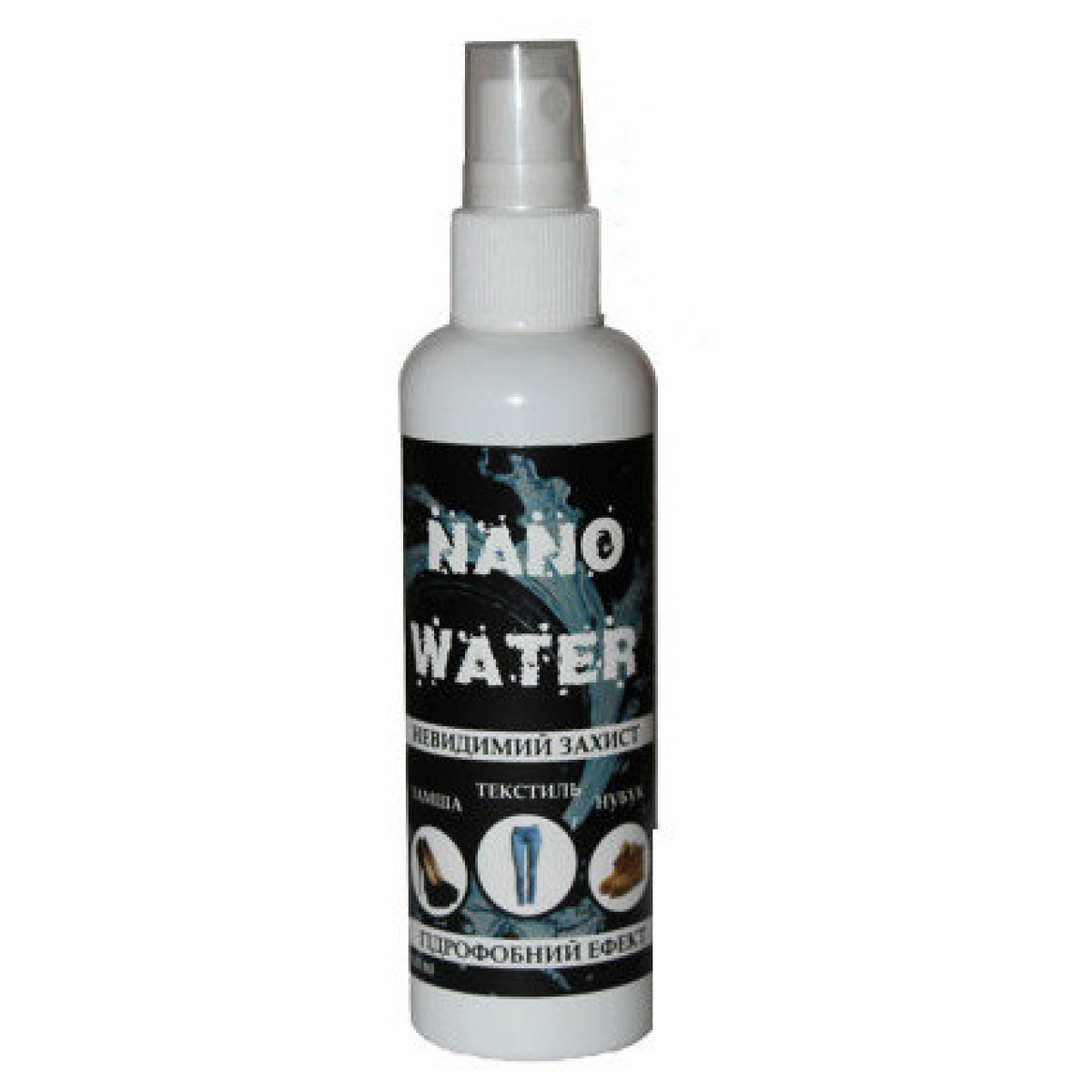 ЕФЕКТИВНЕ ЗАСІБ для захисту вашого взуття та одягу від води та бруду з інноваційною технологією. Після оброблення поверхні NANO WATERом утворюється невидиме покриття, яке надає вашому взуттю й одягу унікальні водо- і брудо-відштовхувальні властивості, у подальшому разі чого поверхня практично не взаємодіє з водою та її розчинами та має ефектом самоочищення без втрати повітропроникності. Цей революційний засіб є хімічно нейтральним і повністю нешкідливим. Легкий і простий у застосуванні. Може використовуватися для всіх типів тканин, замші, нубуку та ін.