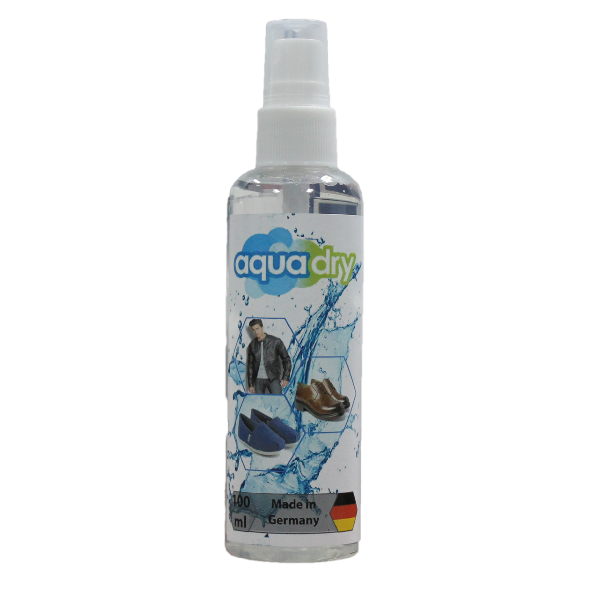 «AquaDry» - це революційне водовідштовхувальне покриття, яке надає унікальні властивості таких матеріалів, як натуральна і штучна тканина, замша, нубук і інші. Даний засіб не токсичний, не містить органічних розчинників і абсолютно прозоро. Опрацьовані матеріали набувають настільки сильні водовідштовхувальні властивості, що їх поверхня практично не взаємодіє з водою та її розчинами і тому володіє ефектом самоочищення. Перед звичайними водовідштовхувальними засобами для взуття та одягу AquaDry має наступні переваги: