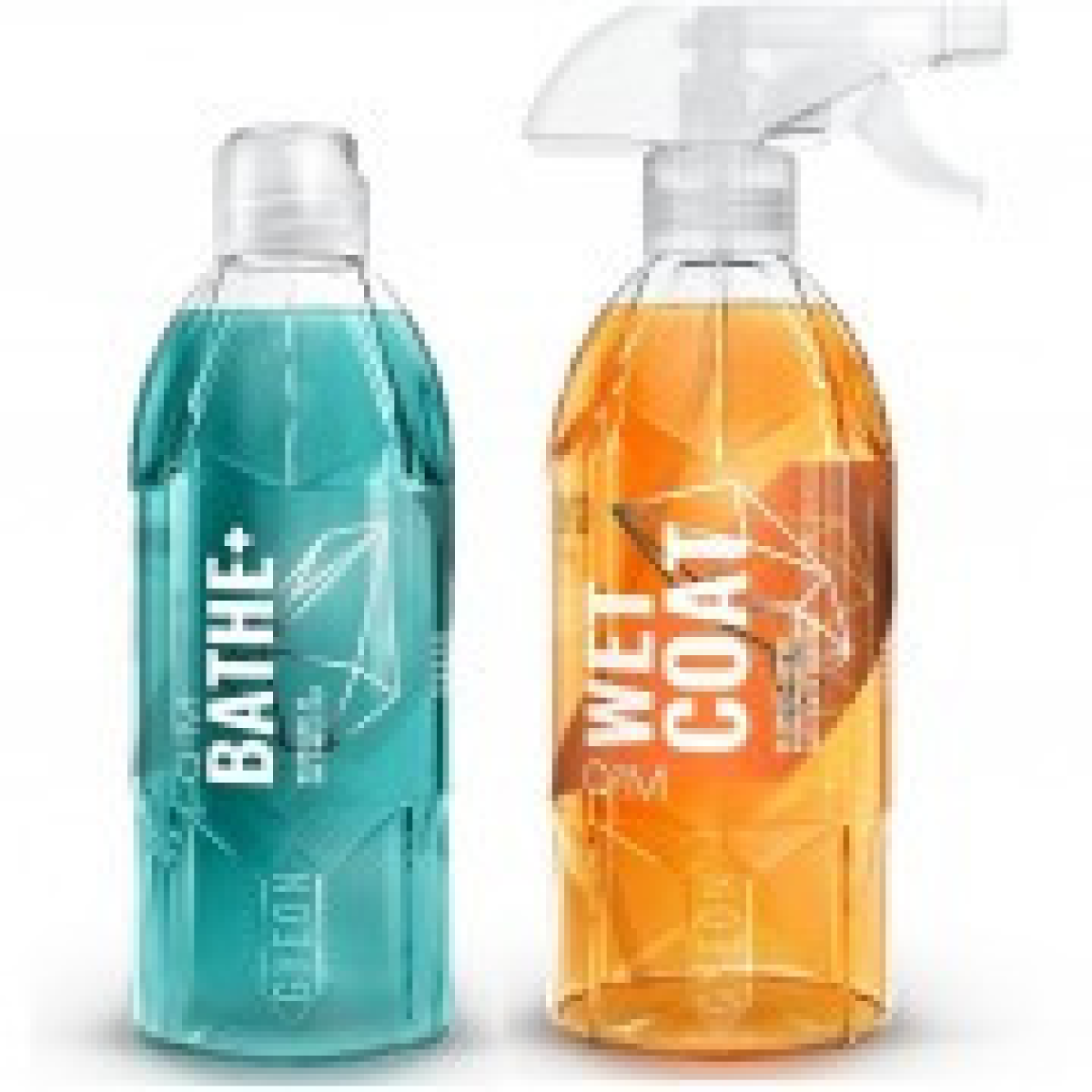 Використання набору: підготувати ємність з 12 літрами води та додати туди приблизно 15-20 мл автомобільного шампуню Bathe+. Далі обробити поверхню спреєм-силантом Wet Coat.
