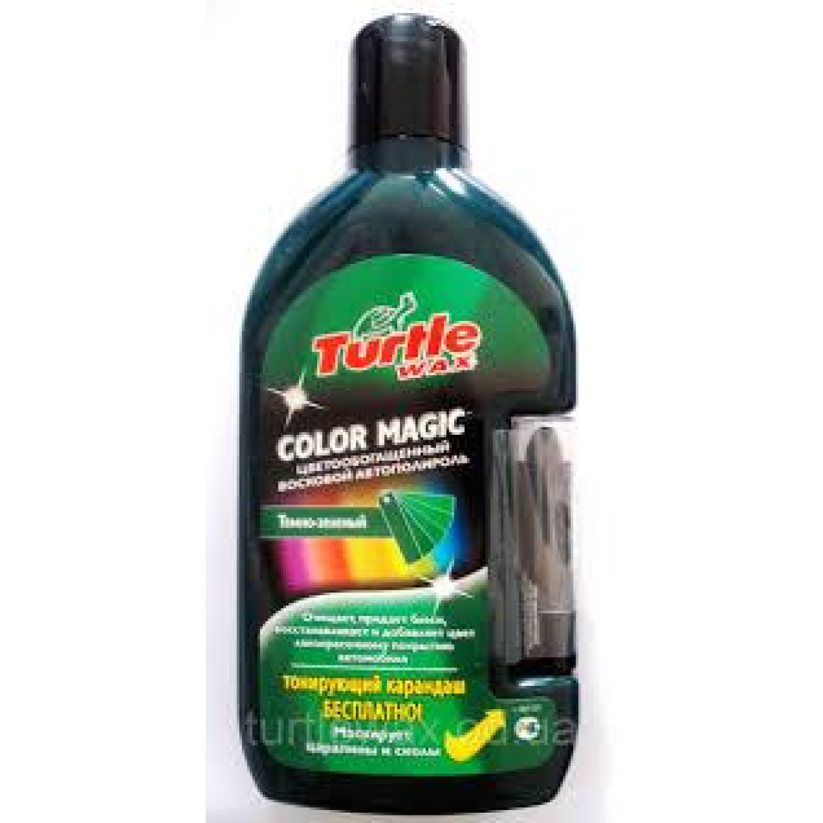 • Кольоробагачений темно-зелений воскова поліроль із тонувальним олівцем Turtle Wax Color Magic Plus (500 мл)