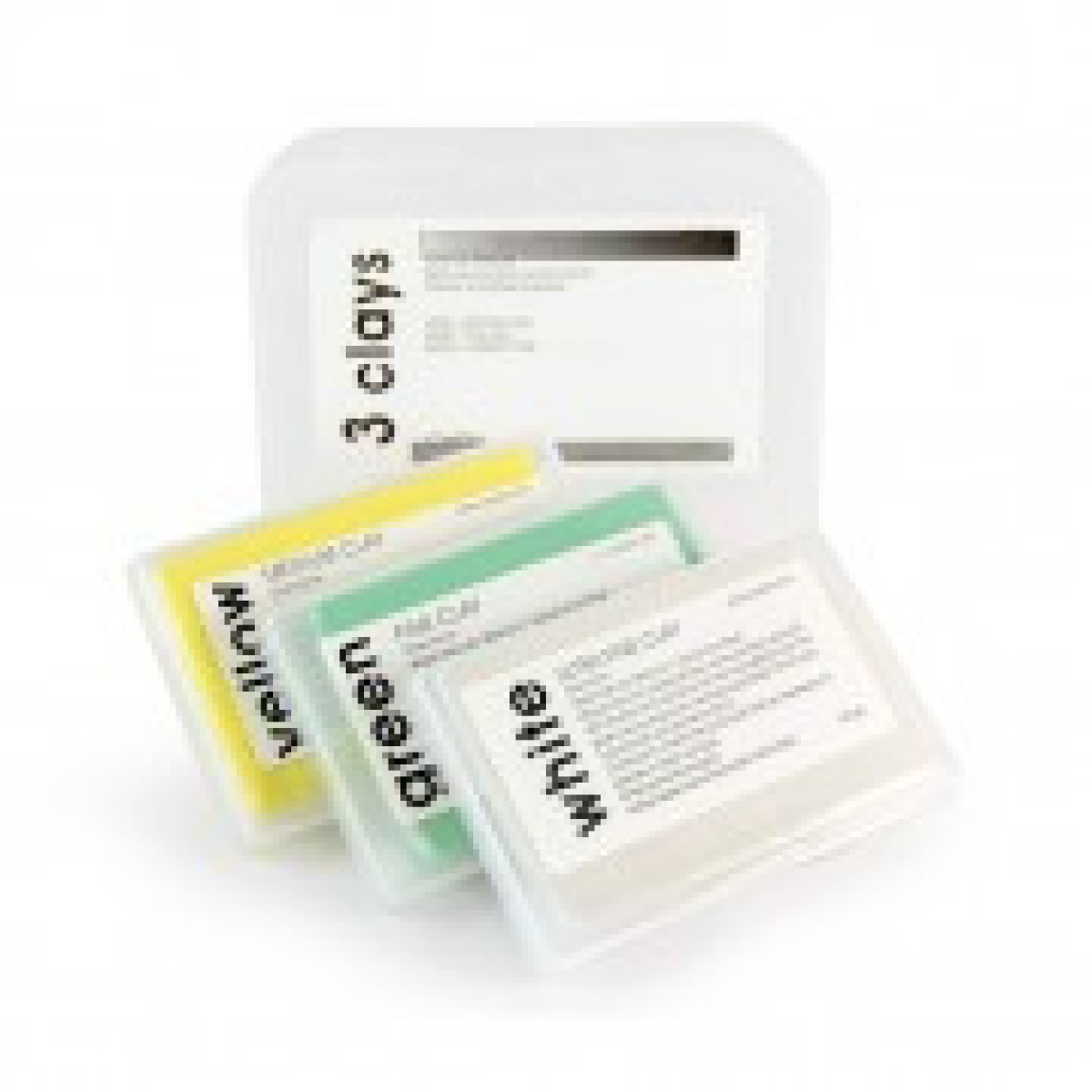 CarPro 3Clays є синтетичною глиною для повного очищення ЛКП, автомобільного скла, фар і колісних дисків. У комплекті присутні три бруска автопластилина, що мають різну ступінь абразивності. Супер м“який – білий (Ultra Fine), м“який – зелений (Fine) і середній – жовтий (Medium). Один брусок розрахований на обробку 3-10 автомобільних кузовів.