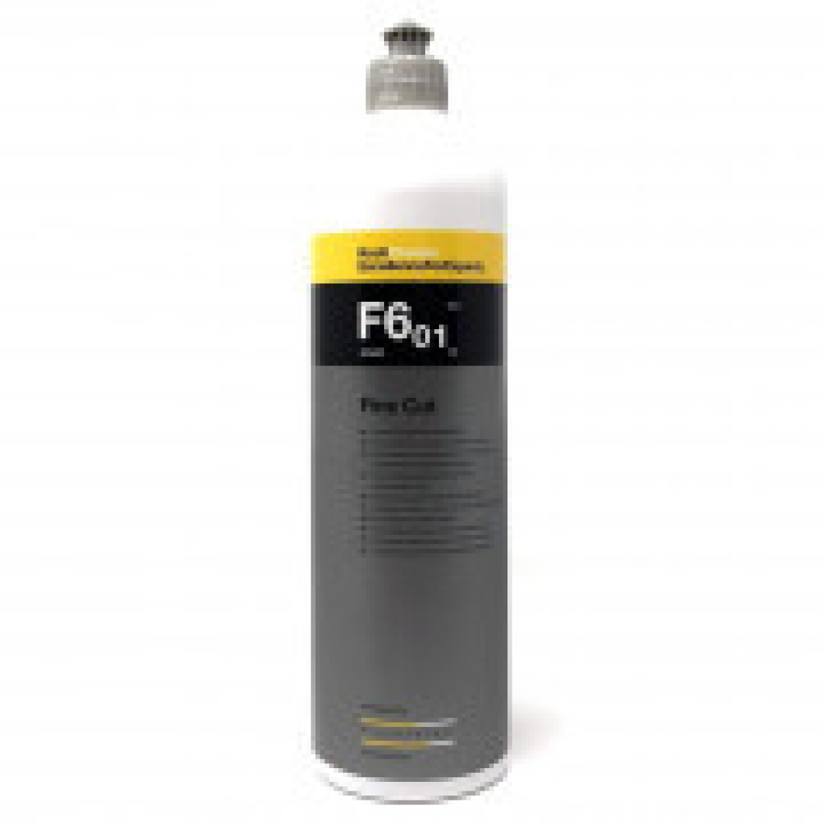Застосування дрібнозернистої полірувальної пасти Fine Cut F6.01: попередньо очистити поверхню. Розподілити продукт за обраним полірувальним майданчиком і, застосовуючи відповідну машинку, обробити поверхню перехресним методом. Швидкість обертання — 2000 обертів на хвилину. Результатність очищення залежить від застосовуваного натиску та кількості обертів. У процесі оброблення треба зменшити тиск і розполірувати препарат лакофарбовим покриттям до дзеркального сяйва. Усути надлишки, використовуючи мікрофіброву серветку. Зверніть увагу на те, що голограми, що утворилися, видаляються за допомогою пасти Koch Chemie Micro Cut M3.02.