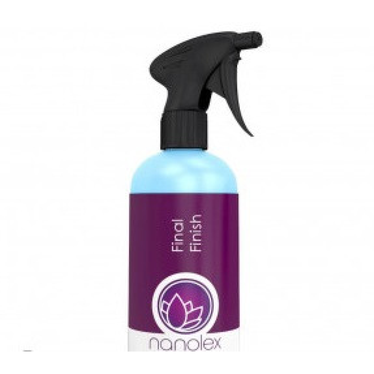 Крім того, препарат утворює гладкий на дотик захисний шар, який має гідрофобні властивості та надає поверхні сліпучий блиск. Може використовуватися для прискорення сушіння після візиту в автомийку. Нанісши Nanolex Final Finish відповідно до технології, ви зможете насолоджуватися його ефектом досить довго (до 1000 кілометрів).