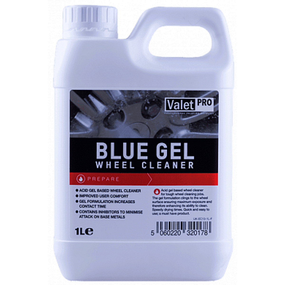 Valetpro Blue Gel Wheel Cleaner — це кислотний (на основі соляної кислоти) гелеподібний концентрований і потужний очисник колісних дисків. Гелева формула дає змогу продукту чіплятися й довго утримуватися (інкапсулюючи забруднення) на колісному диску та водночас не висихаючи.