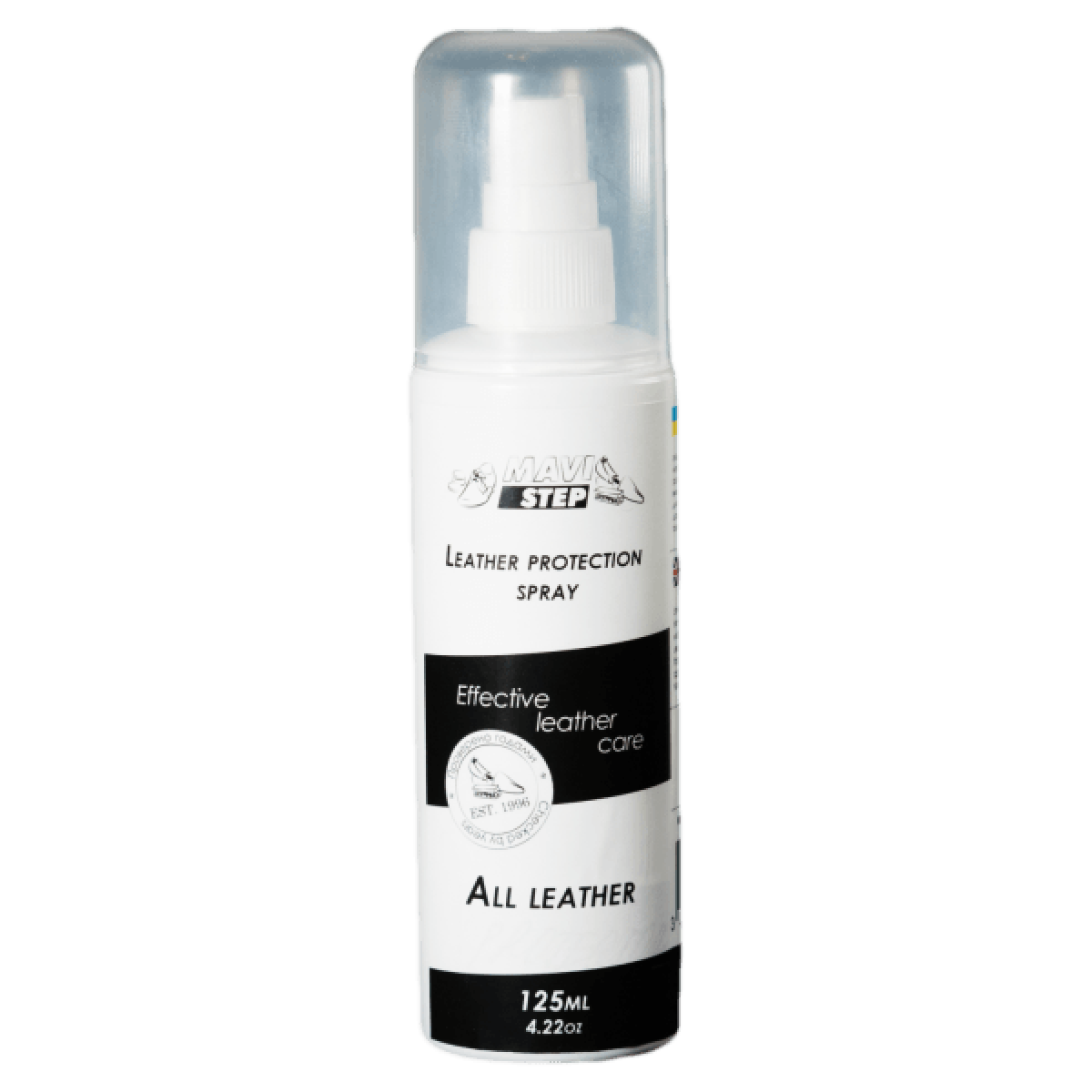 Засіб для взуття MAVI STEP Leather Protection Spray ефективно захищає шкіряні вироби від дощу, снігу та хімічних реагентів; блокує проникнення в структуру матеріалу молекул рідин: від води до жиру. Спрей простий у застосуванні й економний у використанні. MAVI STEP Leather Protection Spray виготовляється виключно з органічних нетоксичних компонентів.