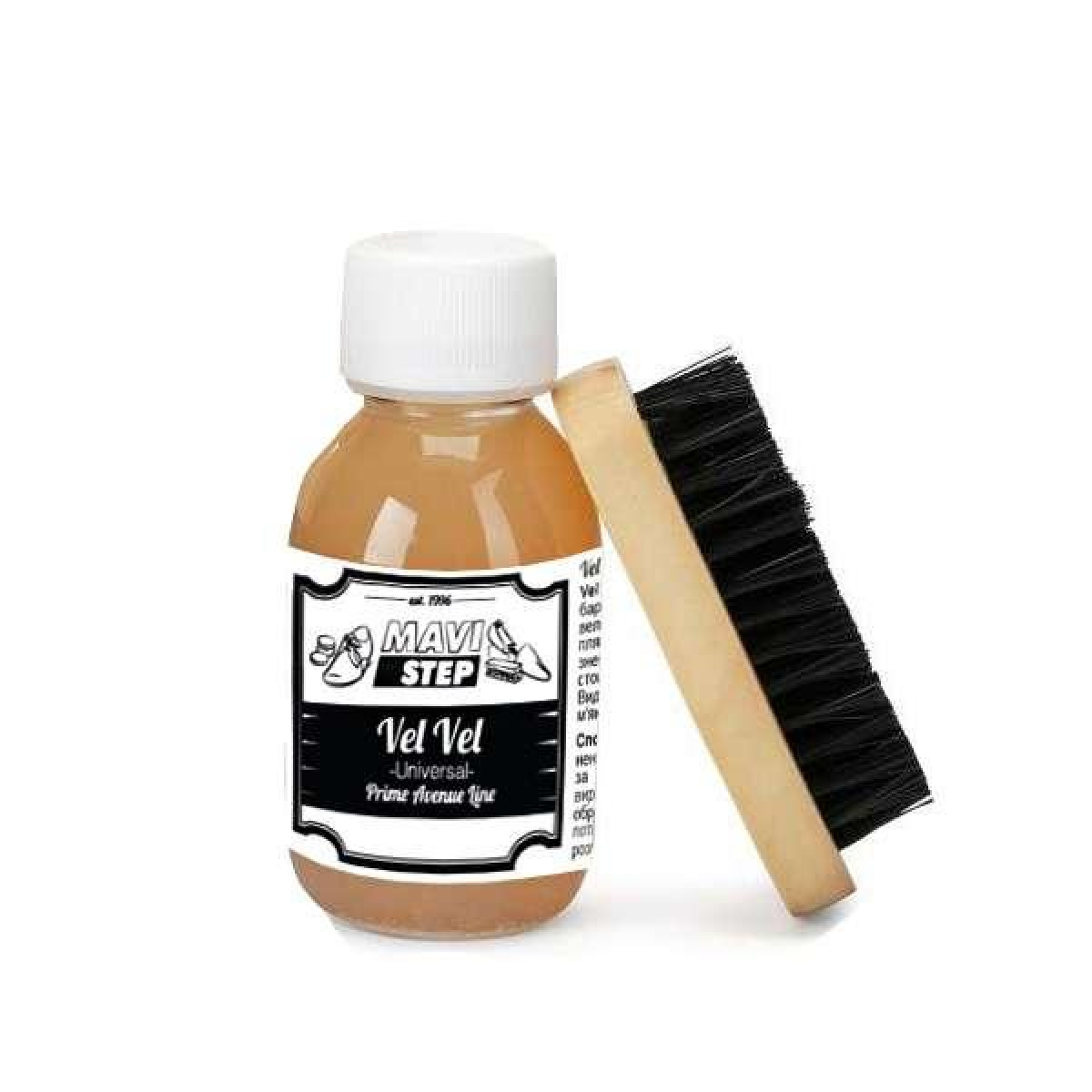 Шампунь MAVI STEP Vel Vel — це пом“якшувальний і очисний засіб для взуття та одягу з оксамитних типів шкір (замша, нубук, велюр). Очисник усуває плями, не залишаючи слідів і розводів. Очисник Vel Vel не знебарвлює вироби, що дає змогу використовувати його для чищення будь-яких замшевих і нубукових виробів, незалежно від їх колірного виконання. Шампунь для замші також відновлює замуслі зони взуття або одягу, відновить м“якість і бархатистість шкіри.
