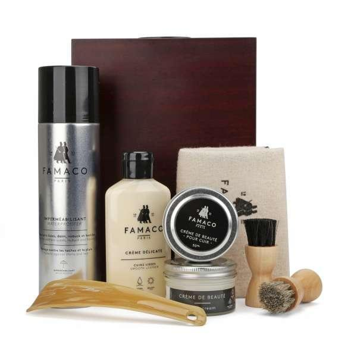 Чудовий набір для догляду за шкіряним взуттям у футлярі з палісандра.
