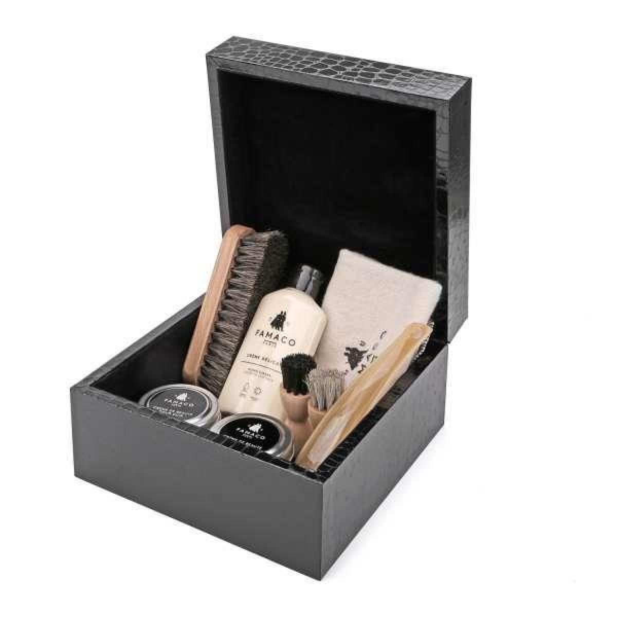 Famaco Renoir Croco – подарунковий набір, що включає взуттєву косметику, аксесуари і інструменти для повноцінного і якісного догляду за дорогою шкіряним взуттям.
