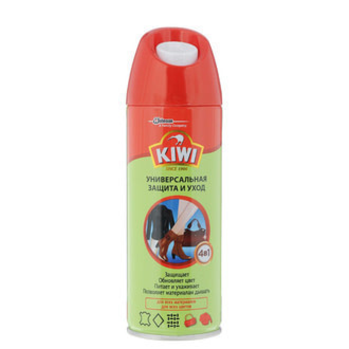 Засіб 4 в 1 від відомої європейської торгової марки Kiwi призначений для догляду за виробами зі шкіри та замші. Захищає, оновлює колір, живить і доглядає, дає змогу матеріалам дихати. Наноситься на взуття розпилювальним рухом.