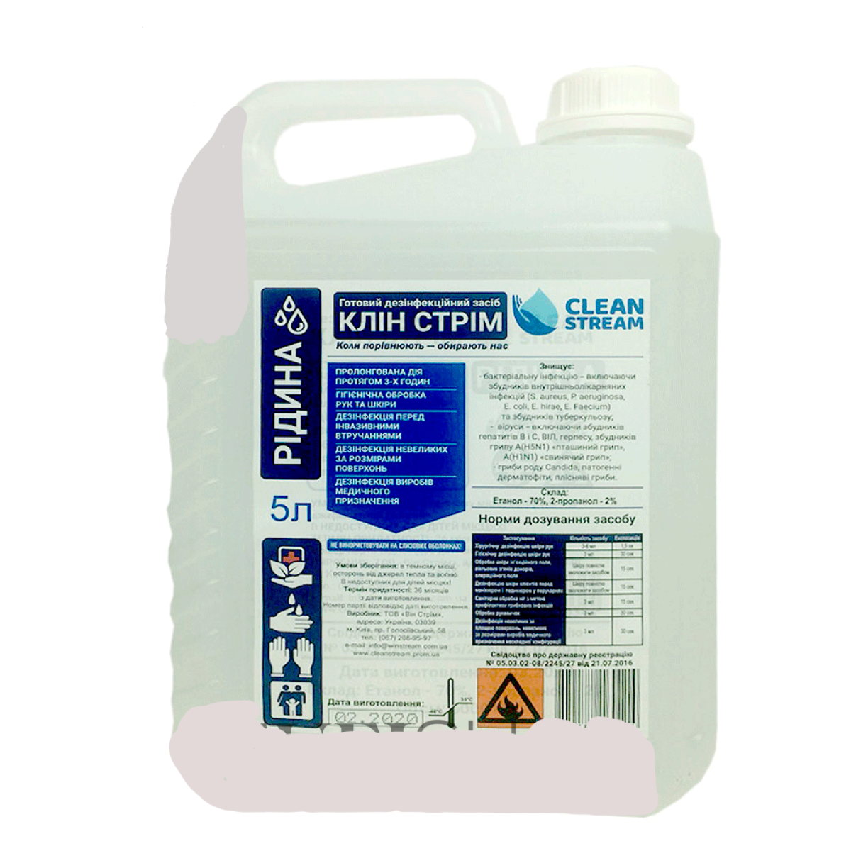 Рідкий антисептик Клін Стрим із дозатором для рук, 5000 мл