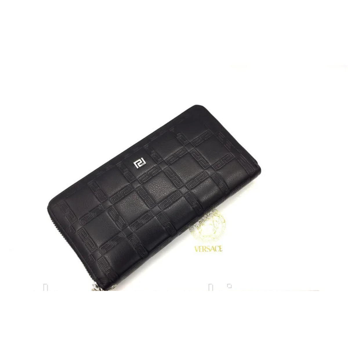 Жіночий шкіряний гаманець на блискавці в стилі Versace (3803) black