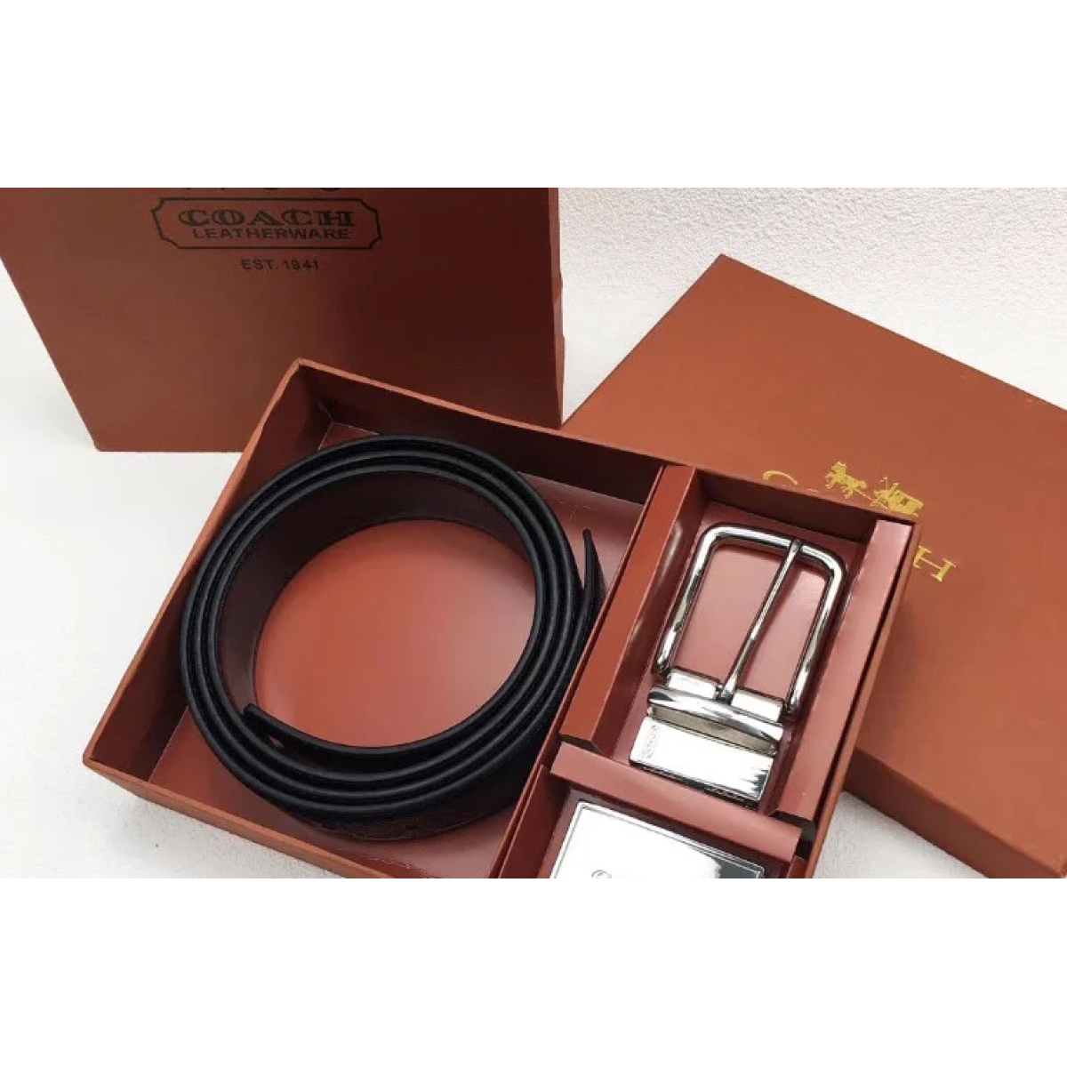 Чоловічий шкіряний ремінь із знімними пряжками Coach (902) подарунковий набір