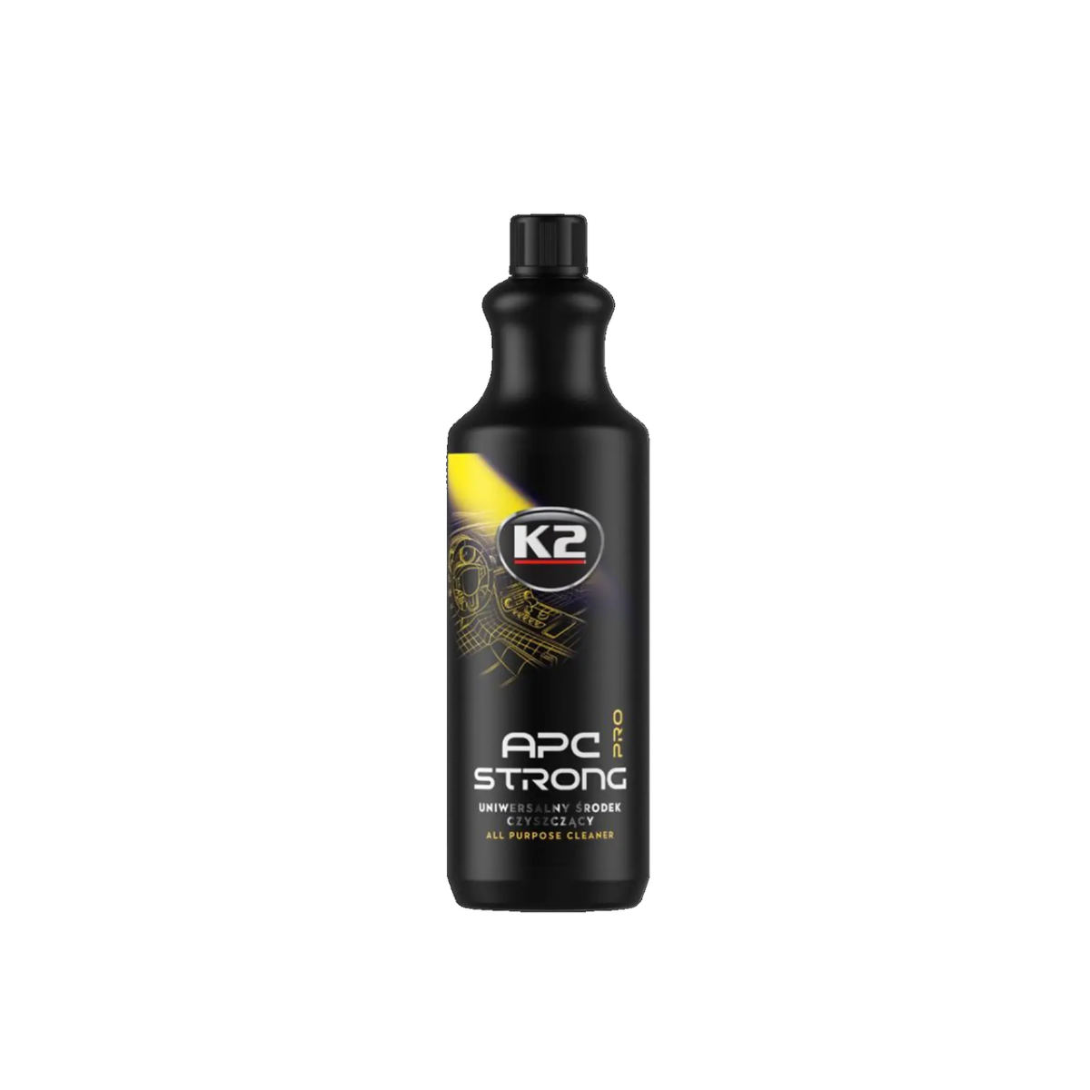 K2 APC Strong Pro — концентрований універсальний очисник для зовнішніх і внутрішніх елементів автомобіля. Формула зі щілочним pH дає змогу використовувати його для ефективного очищення бруду з колісних арок, елементів підвіски, моторного відсіку, так очищення тканинного салону, пластикових декоративних елементів. Також підходить для попереднього миття кузова для розм'якшення особливо стійких забруднень, що в'їлися.