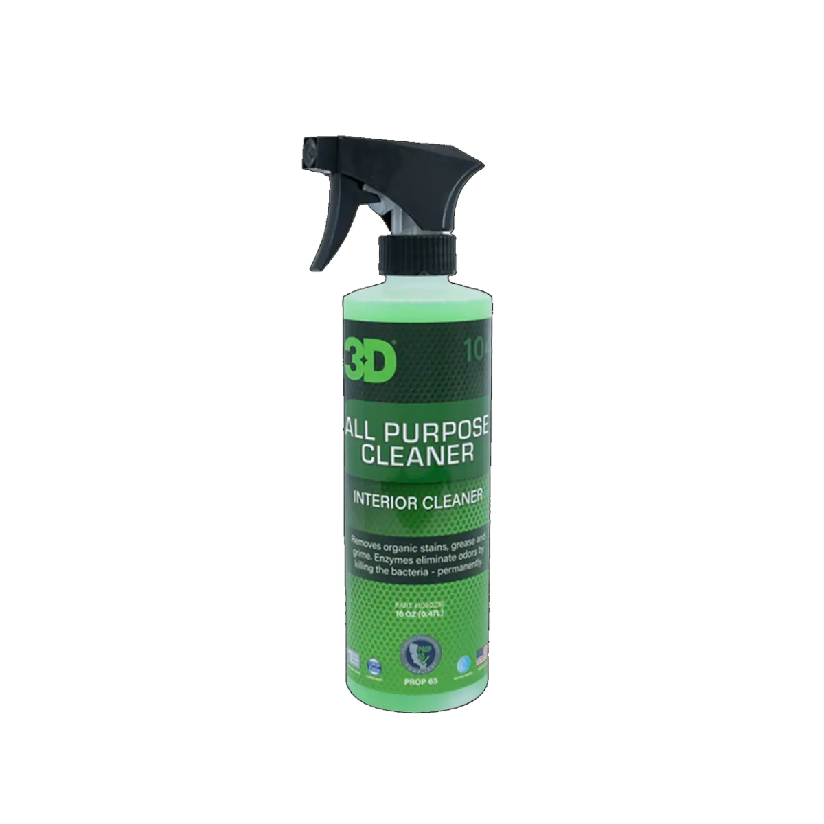 3D All Purpose Cleaner — універсальний аерозольний очисник багатоцільового використання. М'яко очищає й освіжає будь-які поверхні в салоні — прозорий, глянсовий і структурний пластик, тканинні елементи інтер'єру, підлогові килимки. Впорається із забрудненнями кузова, коліс, арок, моторного відсіку. Ефективний проти пилу, жирних плям, відбитків пальців.