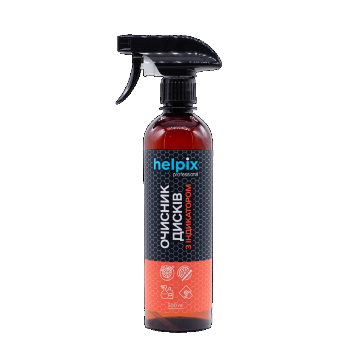 Очисник дисків з індикатором Helpix Professional застосовується для видалення стійких забруднень з колісних дисків та лакофарбового покриття автомобіля. Засіб легко розчинить пилові, масляні плями, дорожній бруд та залишки гальмівної системи. Розчин використовується для усіх типів колісних дисків. При контакті засобу з залишками гальмівної системи та металевими частинками на колісних дисках та кузові авто – засіб змінить колір на темно-рожевий. Підходить для алюмінієвих, полірованих металевих, хромованих та матових дисків.