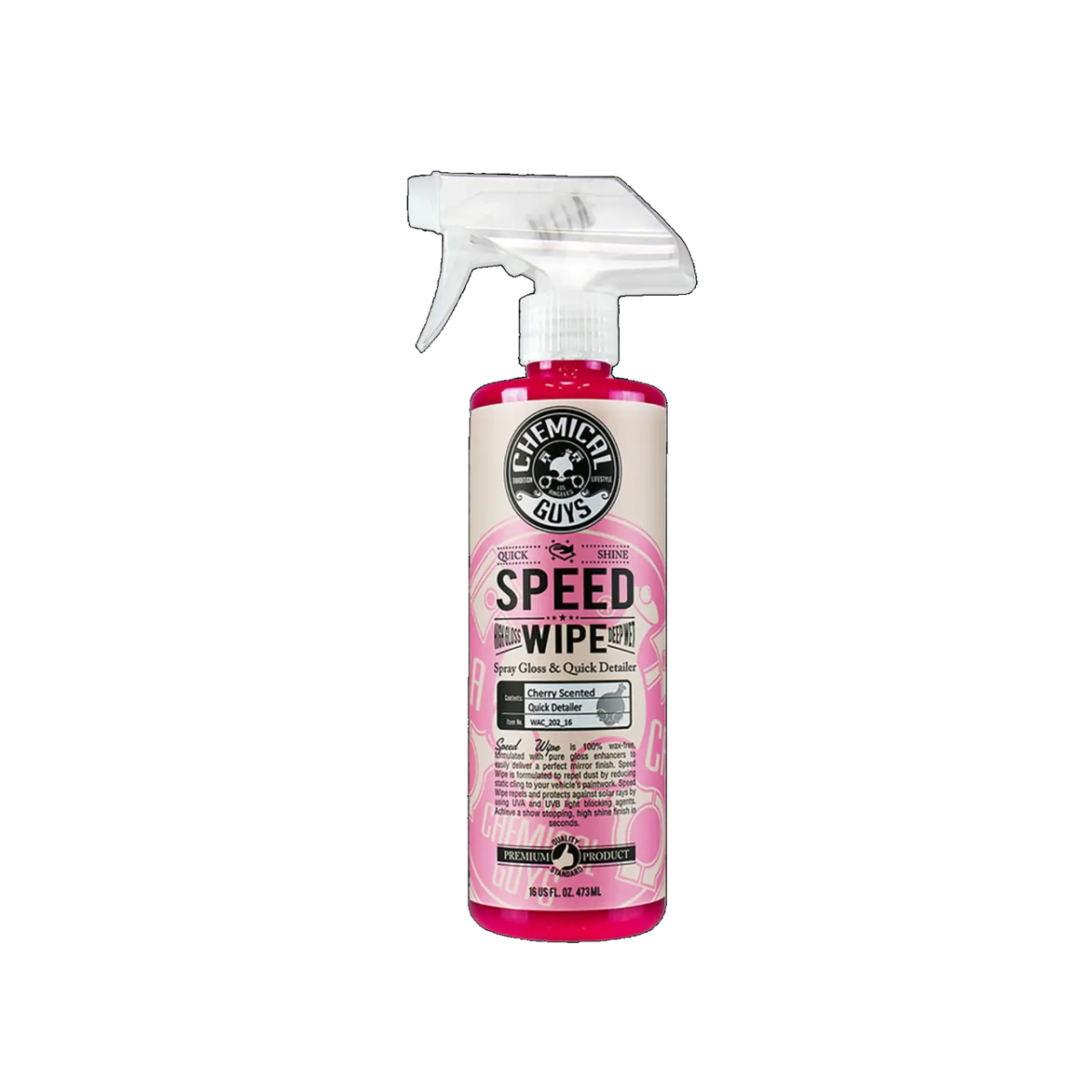 Chemical Guys Speed Wipe Quick Detailer — спрей-силант для швидкого надання дзеркального блиску лакофарбовому покриттю всіх кольорів і відтінків за лічені хвилини. Його вдосконалена формула не містить восків, герметиків і силіконів. Головні активні речовини — безпечні та ефективні полімерні підсилювачі блиску, що не залишають розводів і патьоків під час нанесення та розполірування.