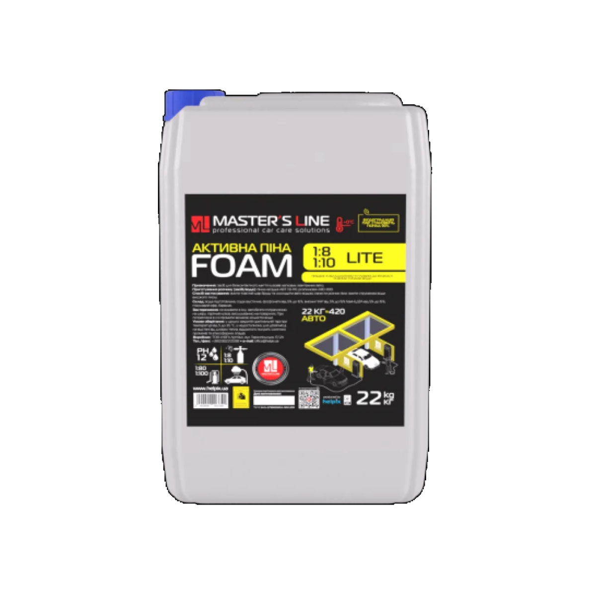 Активна піна Master’s Line «Lite» призначена для безконтактної мийки легкового та вантажного транспорту. Швидко та ефективно видаляє забруднення різного характеру (дорожній бруд, пісок, чорнозем, пташиний послід, сліди тваринного та рослинного походження).