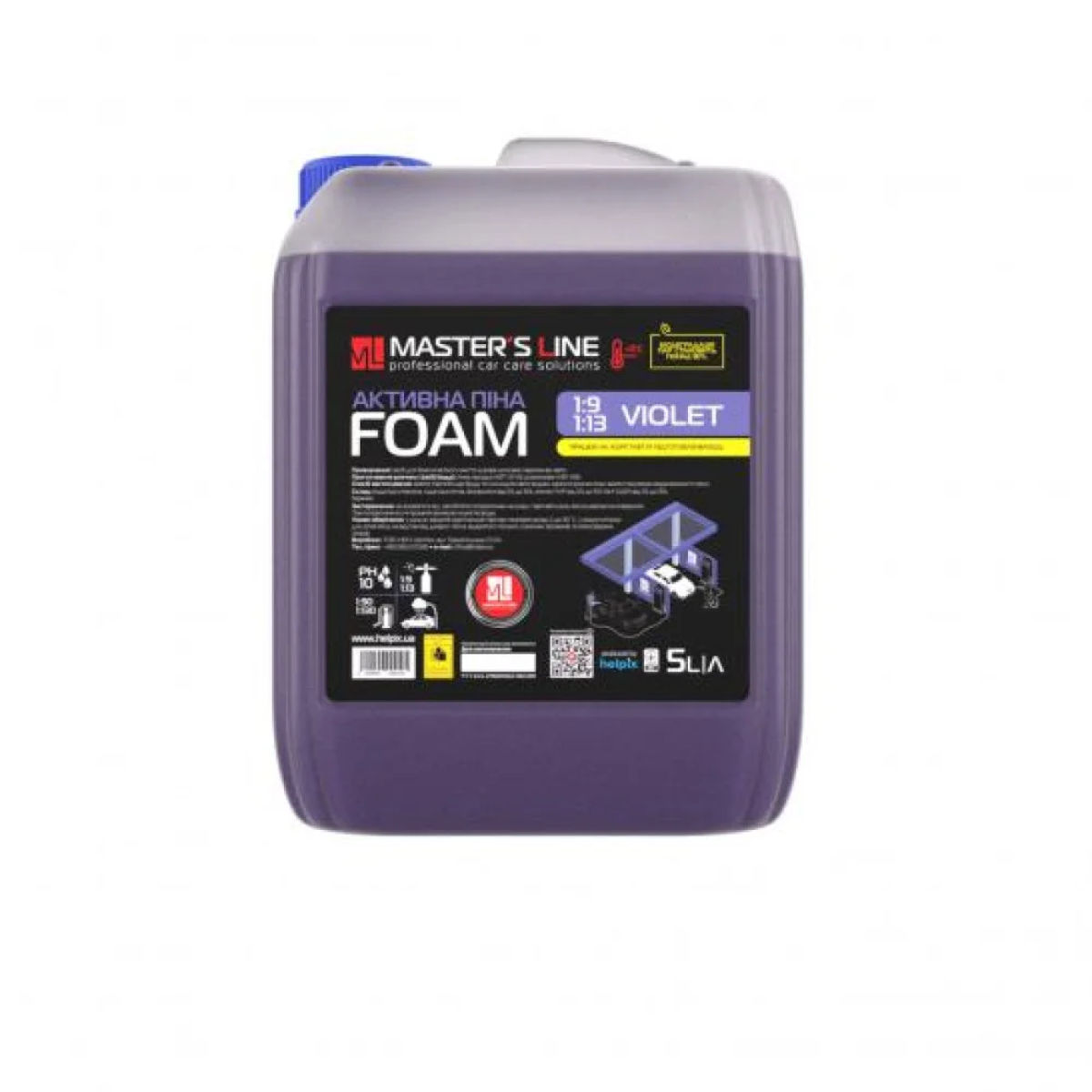 Активна піна Master’s Line «Violet» призначена для безконтактної мийки легкового та вантажного транспорту. Швидко та ефективно видаляє забруднення різного характеру. Ідеально підійде для першої фази мийки авто, видалення динамічних забруднень (дорожній бруд, пісок, чорнозем, пташиний послід, сліди тваринного та рослинного походження).