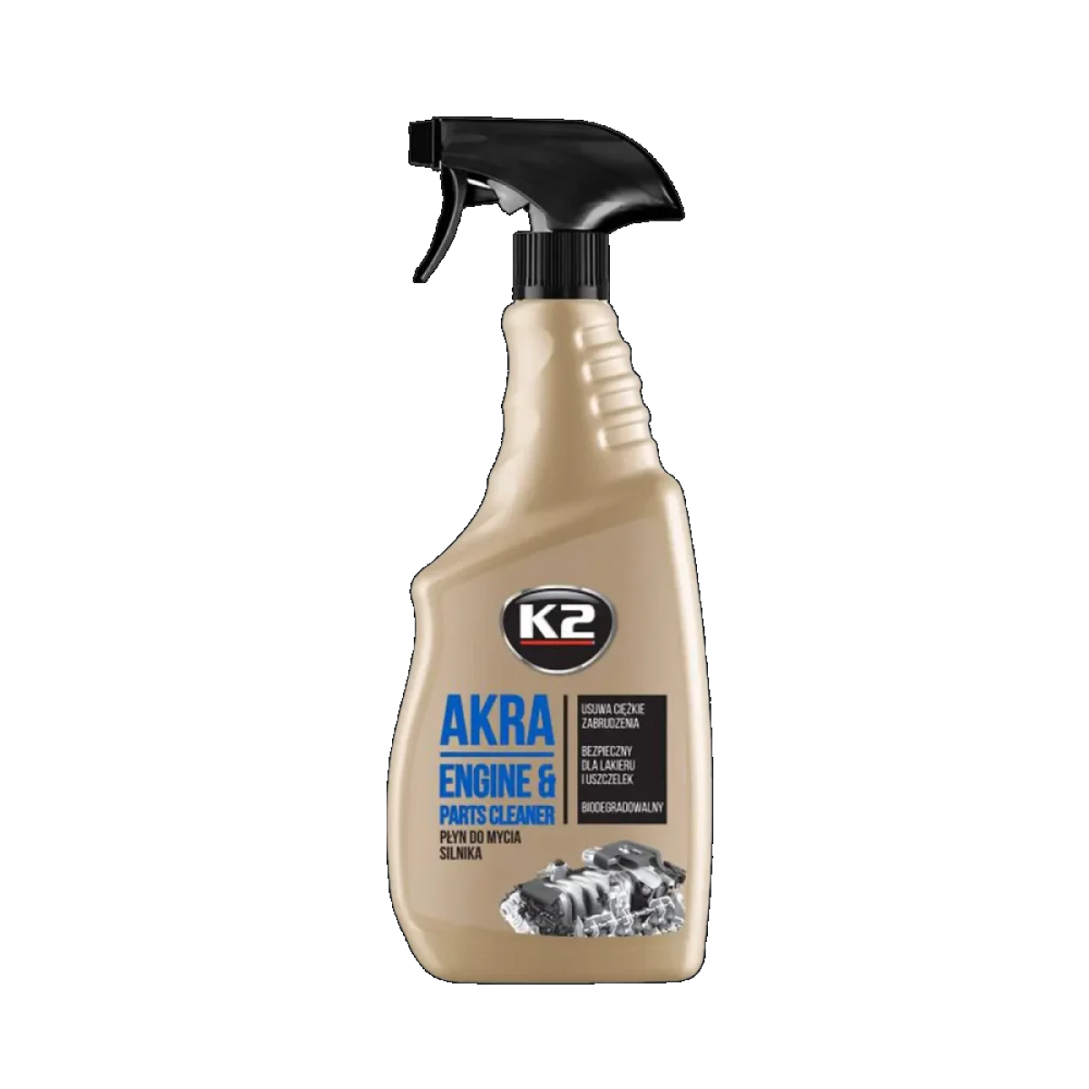 K2 Akra – безпечний та ефективний очищувач моторного відсіку від застарілого бруду, підтікання мастил та інших технічних рідин у формі спрею. У його формулі – потужні поверхнево-активні речовини, що не завдають шкоди фарбі та гумовим деталям. Склад очищувача відповідає вимогам екологічної безпеки VOC (Volatile Organic Content). За необхідності з його допомогою можна проводити очищення підлог автомайстерень та студій детейлінгу від паливно-мастильних матеріалів та інших технічних рідин.