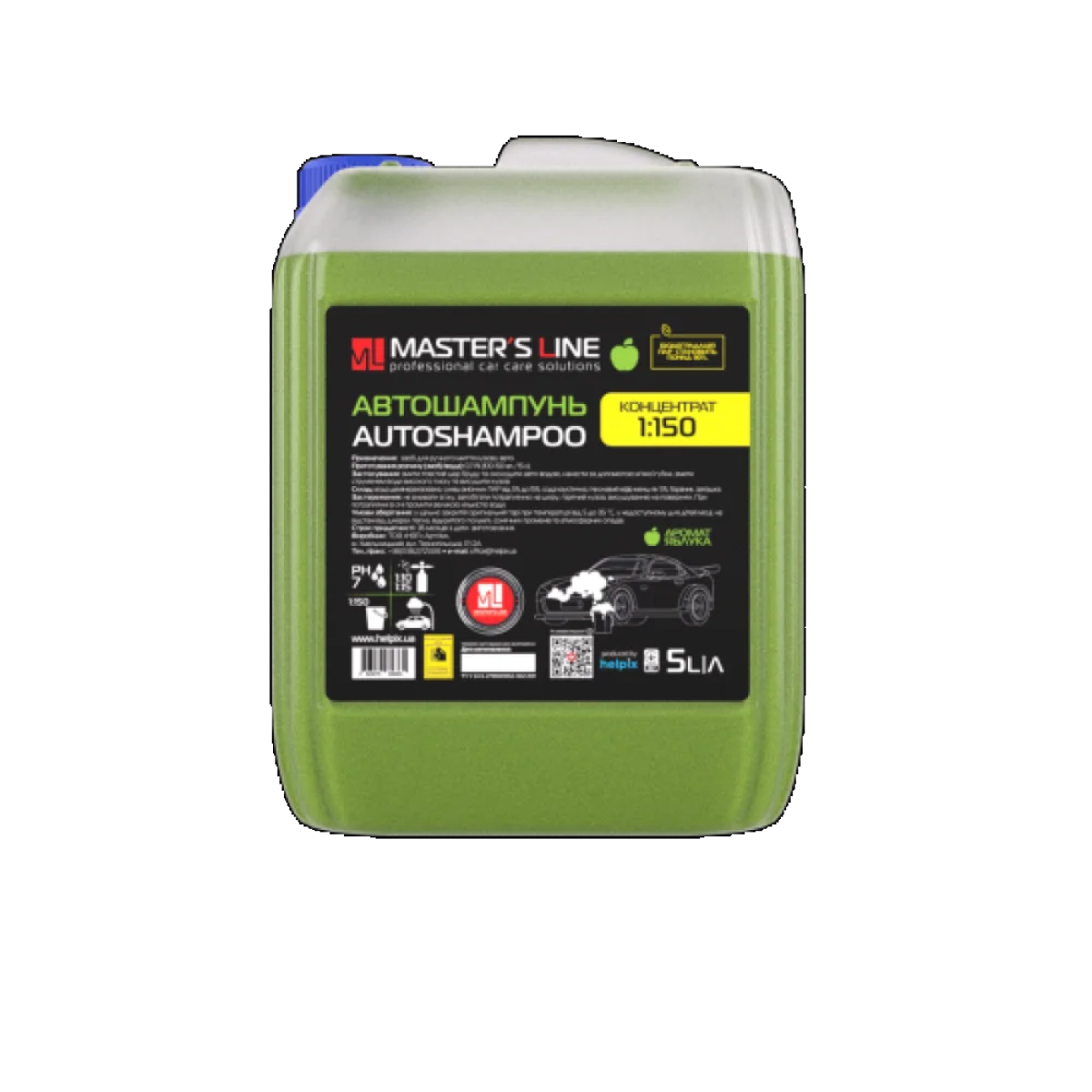 Автошампунь концентрат 1:150 Master’s Line призначений для ручної мийки авто. Нейтральний високопінний шампунь ідеально підійде для другої фази мийки авто (видалення статичних забруднень). Легко розчиняється як в холодній, так і в теплій воді.