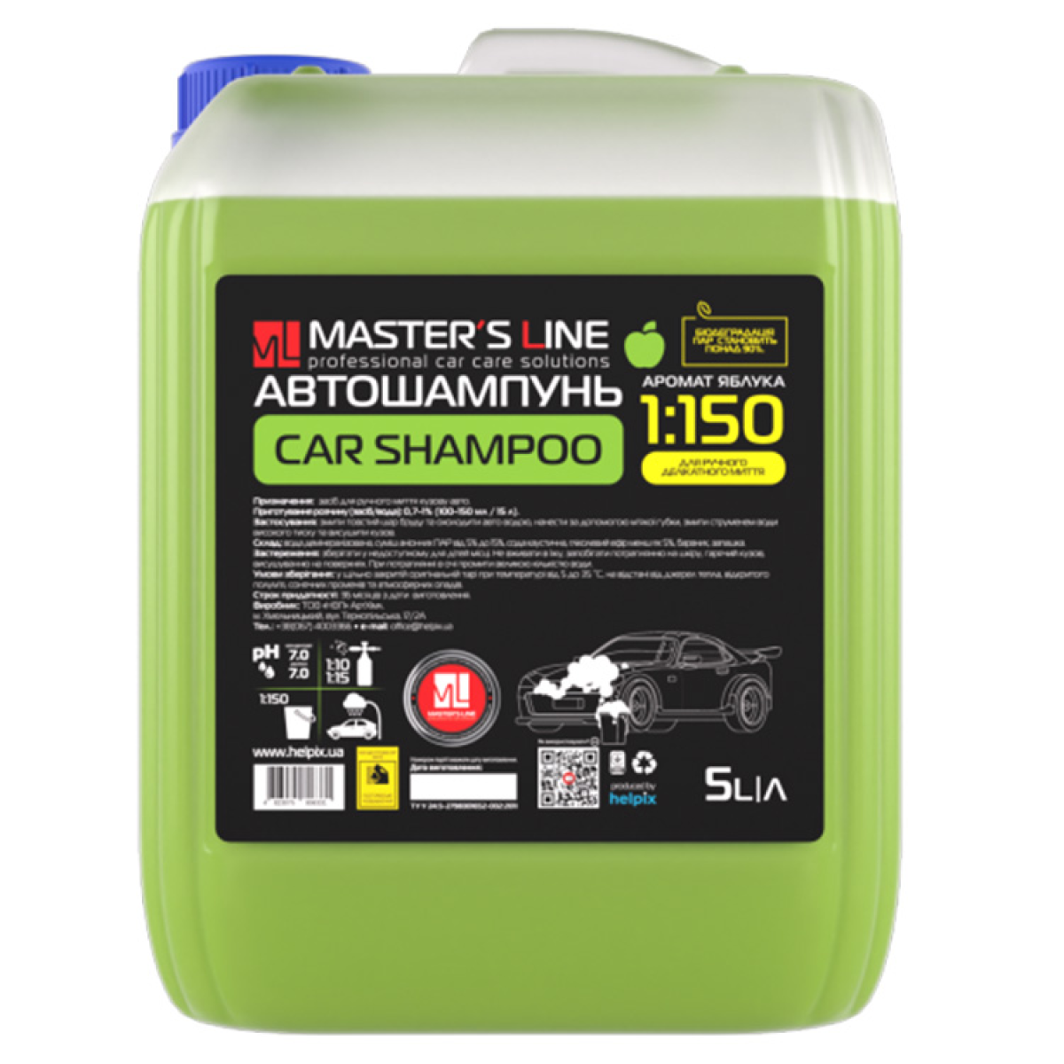 Автошампунь концентрат 1:150 Master Line призначений для ручного миття авто. Нейтральний високопінний шампунь чудово підійде для другої фази миття авто (видалення статичних забруднень). Легко розчиняється як у холодній, так і теплій воді.