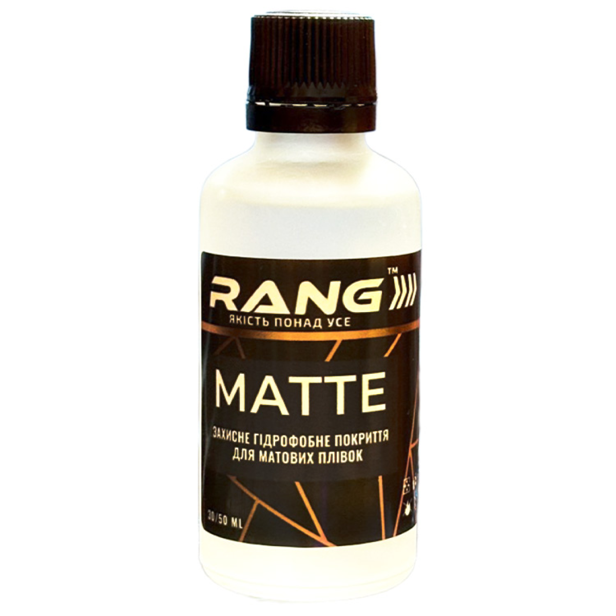 Rang Matte 50 мл — це професійне гідрофобне покриття, спеціально розроблене для захисту матових плівок і матових лакофарбових поверхонь автомобіля. Формула продукту створена так, щоб зберігати природний, як «бартовий» тип матового покриття, не додаючи блиску або плям.