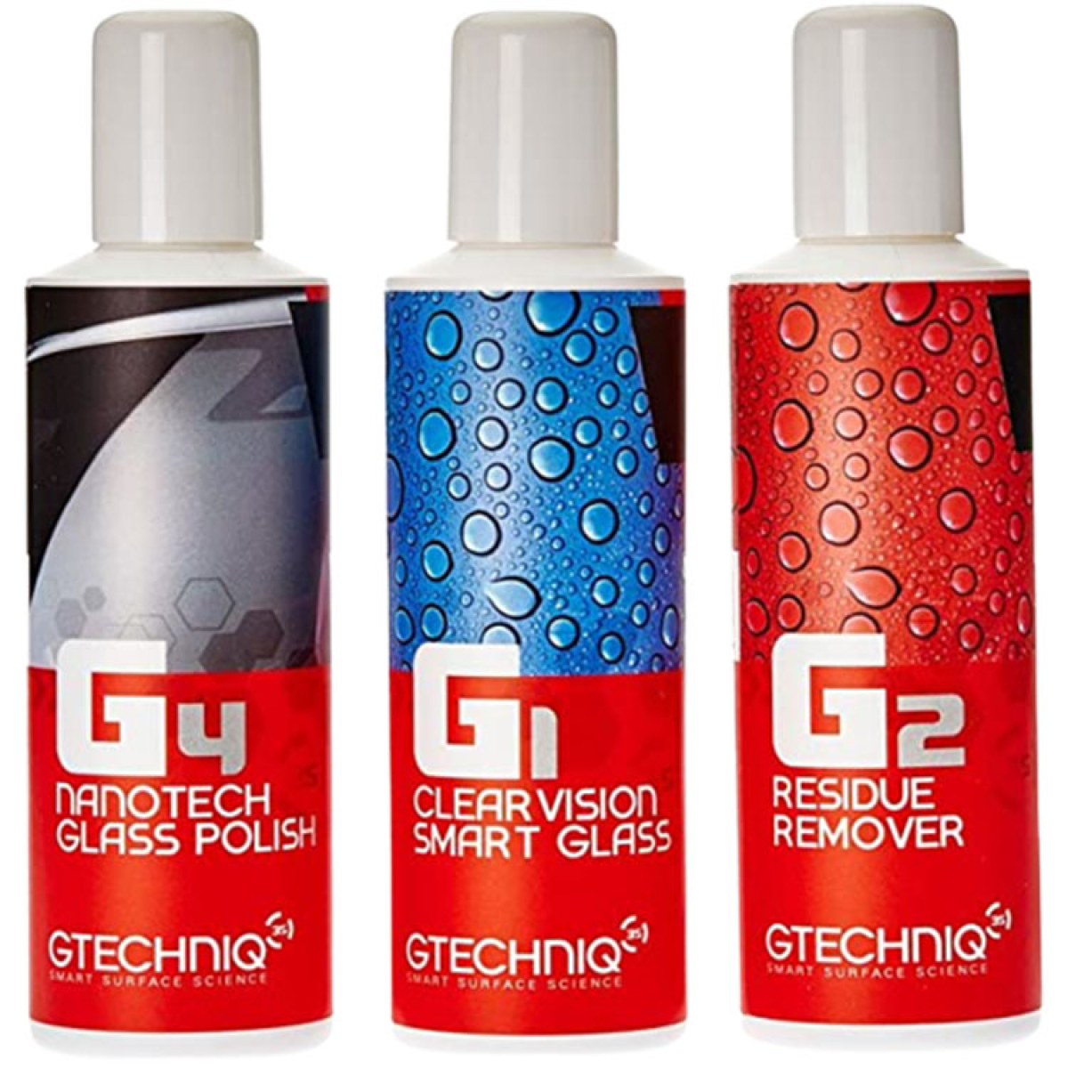 Набір покриття антидощ - Gtechniq G1+G2+G4 ClearVision Screen Kit 100 мл. (G1/G2/G4-100ml) Цей комплект пропонує найкраще рішення для вікна автомобіля в зимові місяці. З G1 ClearVision Smart Glass на вітровому склі та G4 Nanotech Glass Polish для полірування вікон ви можете отримати чудову видимість за будь-якої погоди. Цей комплект забезпечує кращу видимість в умовах дощу, снігопаду, туману та забезпечує чітку видимість і безпеку. Мало того, що використання G1 призводить до самоочищення скла, той факт, що він допомагає їм залишатися чистими, так само допомагає знизити стомлюваність очей, яка, як відомо, призводить до сонливості та втрати концентрації під час водіння. Комплект містить: 1. 100 мл G2 Residue Remover 2. 100 мл. G4 Nanotech Glass Polish; 3. 100 мл G1 ClearVision Smart Glass