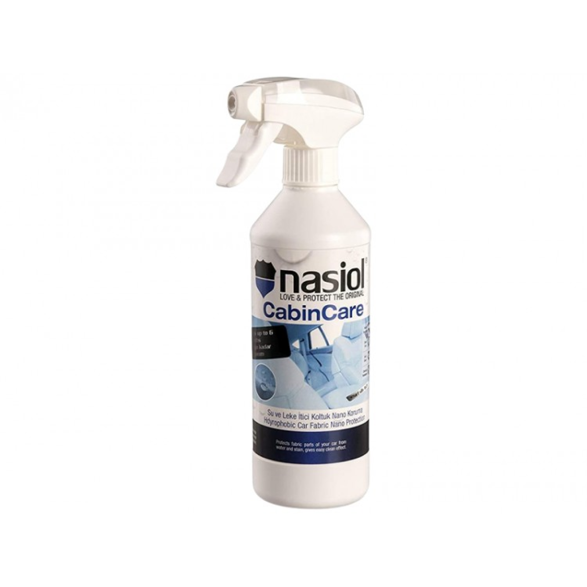 Захищає тканинні поверхні автомобіля від рідин і плям, як-от сидіння, килимові покриття й відкидний дах, залишаючи їх поверхні чистими та легко очищуваними. Захист автомобільної тканини Nasiol Cabincare Cabincare створює водонепроникне й олеофобне покриття й захищає текстильні частини вашого автомобіля від води та плям. Гідроізоляційний ефект триває до 6 місяців, а процедура нанесення займає всього 15 хвилин.